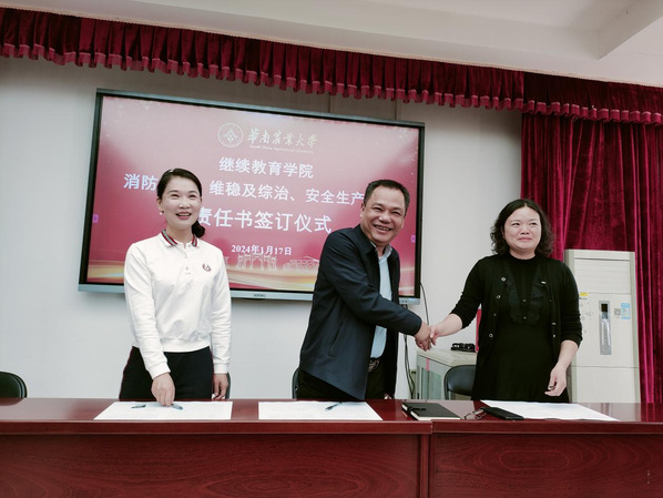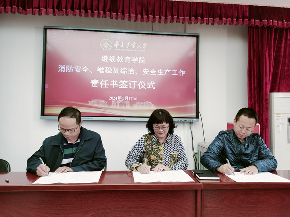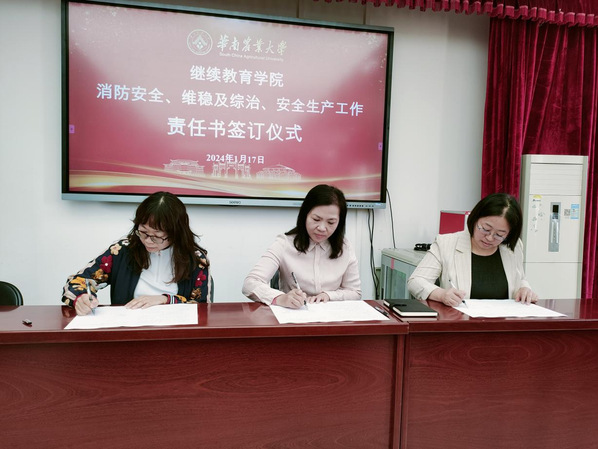 会议还举行2024年维稳综治与安全责任书签订仪式,学院领导与各部门责任人分别签订了维稳及综治工作、消防安全工作、安全生产工作责任书。